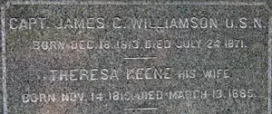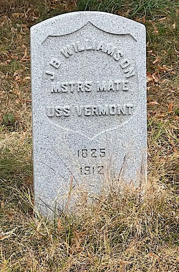 An executive officer on the steam-sloop Brooklyn in 1861, Williamson was commissioned commander on April 15, and took charge of the landing of troops at Fort Pickens, Florida, that year. The commander of the Penguin in the East Gulf Blockading Squadron in 1862-63, he then was at the helm in the South Atlantic Blockading Squadron from 1864-65. In 1866, he was on special duty at New Orleans, Louisiana, attained the rank of captain on October 10, 1866, and then served at the Boston Navy Yard from 1868-69. His last home was at 252 Grove Street in Jersey City. His death was attributed to cancer. Section 73, lot 3513.
