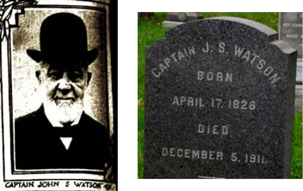 WATSON, JOHN STOUGHTON (1826-1911). Captain, United States Navy. Born in Northampton, Massachusetts, the son of a paymaster in the United States Navy, he attended Phillips Exeter Academy, class of 1839. He served in the Navy during the Civil War, attaining the rank of captain. His brother, Eugene Winslow Watson, also joined the Navy during the Civil War and attained the post of rear admiral. He may have been the John S. Watson who entered the Navy as an acting master on September 9, 1861, became an acting volunteer lieutenant on August 7, 1865, and was honorably discharged on October 21, 1866. This man served on the USS Shenandoah as part of the Northeast Squadron. Or, he might have been the John S. Watson who became an acting master on November 17, 1863, an acting volunteer lieutenant on June 3, 1864, and was honorably discharged on October 30, 1865. If that man, he served on the USS Hastings with the Mississippi Squadron.