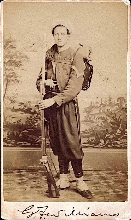 At 6′ 2″ with fair complexion, gray eyes and auburn hair, Williams enlisted in the 5th New York Infantry as a private on July 10, 1861. Writing about the skirmish at Big Bethel, Virginia, the previous June 10, he shed light on the thoughts of a soldier as he prepared for an assault: