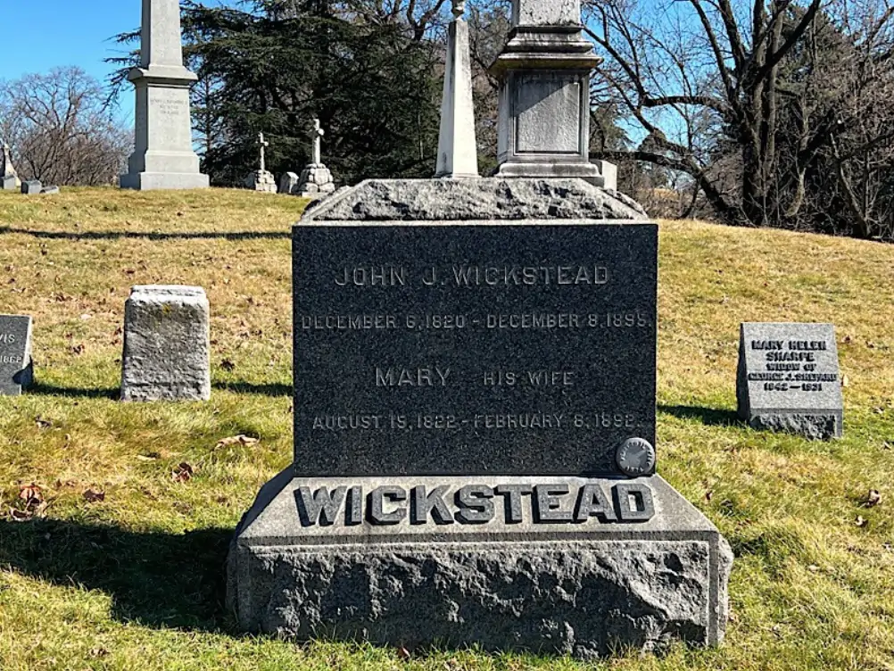 A watch manufacturer, Warner is said to have originated the art of colored photo-engraving on the inside of watch cases. His obituary also notes that he conceived the idea of a tunnel under the East River as early as 1883 that would serve as a pedestrian walkway between Brooklyn and Manhattan. That vision did not consider cars traversing the tunnel. Warner’s last residence was 81 Morton Avenue, Brooklyn. Section 202, lot 29040, graves 1 and 2.
