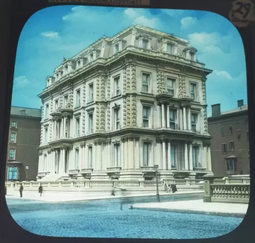 Some of these photographs date from the 1860s but were published as lantern slides several decades after they were taken. For instance, the ruins of P.T. Barnum’s Museum, on Broadway, were photographed in March 1868, just after the fire there (Barnum’s museums and circuses suffered repeated fires–in 1864, 1865, 1868, and 1872):