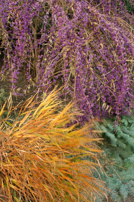 It has been an unusually warm fall at Green-Wood. Many flowers continue to bloom. Here, a few that are still in their glory. Most of these are in the gardens near our Arches, our front gates. The brownstone retains heat, creating a warmer area for plants. These gardens were planted by Superintendent of the Grounds Art Presson, who is trained in horticulture, and does a great job on the cemetery plantings.
