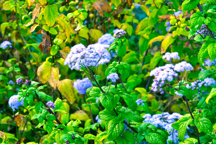 Here’s a wonderful blue (though digital photography doesn’t do the blue of the flowers justice) ageratum–ageratum blue blazer.