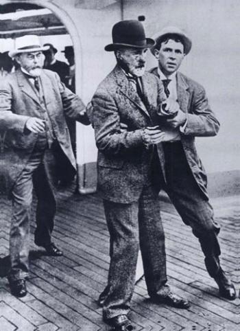 One hundred years ago today, August 9, New York City’s Mayor William J. Gaynor was about to embark on a well-earned vacation cruise when he was shot by a New York City watchman who recently had been fired from his job. Here’s the dramatic photograph of Gaynor’s wounding, taken just seconds after a shot had been fired into Gaynor’s throat at point blank range. This extraordinary photograph, taken by New York World photographer Bill Warnecke, was the result of a rather strange circumstance. All of the other photographer covering the mayor’s departure had come and gone by the time Warnecke, running late, arrived. So it was Warnecke who captured this image, one of the greatest of news photographs, when the shooting started. Gaynor is seen here struggling to stay on his feet. According to his own account, he could not see, was unable to breathe, and heard a “metallic roar” coming and going in his head.