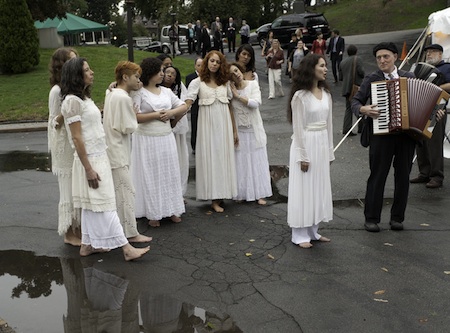There was entertainment–here are some of the angels and accordions of “Angels and Accordions” (our very special site specific performance, coming up on October 9–click here for details and to purchase tickets) perform simultaneous versions of “Wade in the Water” and “Somewhere Over the Rainbow.”