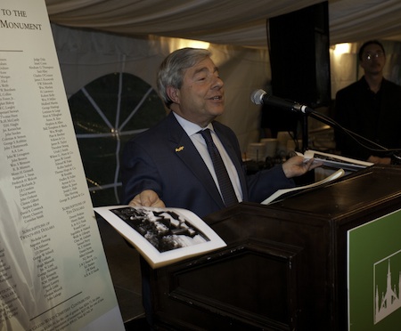 And we were very privileged to have Betsy Barlow Rogers, founding head of the Central Park Conservancy and a legend in landscape design, as our honoree. That’s Betsy, above, proudly holding up the De Witt Clinton award which she received last night.