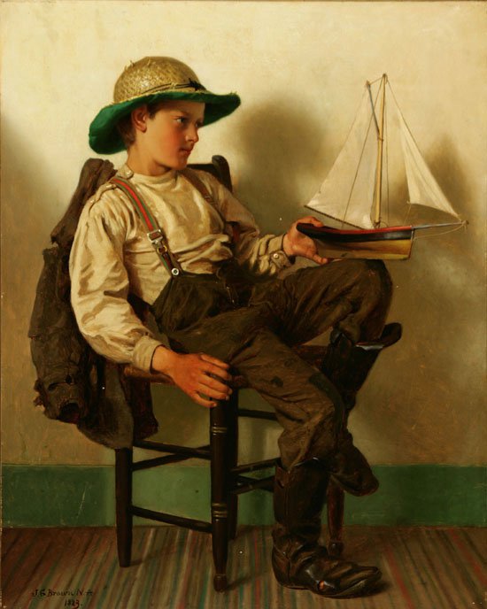 At a recent Weschler’s auction in Washington, D.C., Green-Wood’s permanent residents did very well. The top lot of the auction was “A Young Aspiring Sailor” by John George Brown (1831-1913), which soared to $192,950. A native of England, Brown studied painting there, then came to America in 1853 and settled in Brooklyn. There he continued to refine his technique and developed a specialization: sentimental paintings of street children, often newsboys and bootblacks, which earned him national fame. Brown explained his choice of subject: “I do not paint poor boys solely because the public likes them and pays me for them, but because I love the boys myself, for I was once a poor lad.” His art made him a wealthy man and he invested in New York real estate. He was elected president of the National Academy of Design in 1869 and served as vice president of the Water Color Society. During the last ten years of his life he stored many paintings in a safe deposit box, to be sold by his family after his death, when, it was hoped, prices for his work would increase. John George Brown is interred at Green-Wood in section 102, lot 10897.
