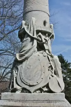 Just by coincidence, I happened to lead an expedition of volunteers up to Woodlawn Cemetery last week. Susan Olsen, Director of Historical Services there, gave us a quick and very delightful tour–and one of the first monuments she pointed out was that to the famed Civil War hero, Admiral David Farragut (“Damn the torpedoes, full speed ahead!”). Susan noted that that elaborate monument was by Casoni & Isola. Wow! Farragut died in 1870, making it likely that this monument was created at about the same time as the Culver Monument at Green-Wood. Here’s an overview and then a detail of the Farragut.