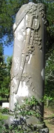 The monument is a good deal more primitive than the Culver Monument–the carving is less elaborate–but some of the design elements–the weapon, the narrow trunk-like shape–are similar.