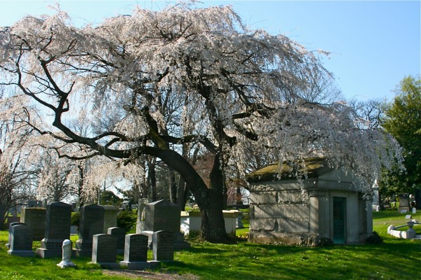 You don’t have to be a weatherman, or even a cemetery historian, to know that winter 2011-2012 barely made an appearance, and that spring it up and blooming. Looking at photographs I took last year, it seems to me that we are about 10 days earlier with blooms this year than last. I took these photographs yesterday, March 28, 2012–amazing color for so early. Get out on Green-Wood’s grounds this weekend and enjoy the blooms and the emerging leaves!