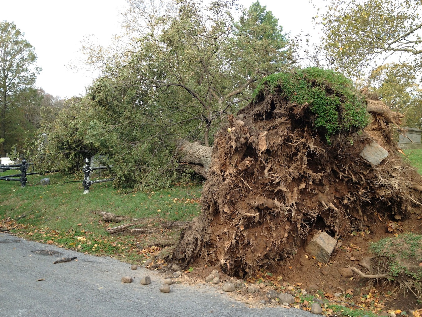 300 trees were lost. And those trees took a toll as they crashed to the ground, landing on, and shattering, monuments and fences.