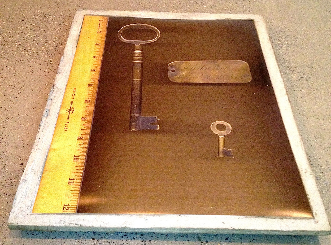 One of three very large prints from Troy’s key project. He also made these very large and heavy (about 150 pounds each) concrete frames. Note how these keys seem to be standing up in 3D.