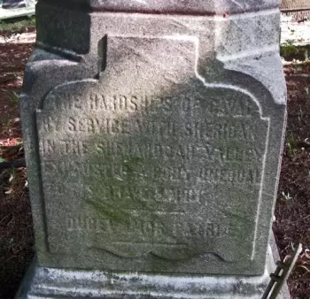 His elaborate gravestone is inscribed with these words, The Hardships Begotten By Service With Sheridan In The Shenandoah Valley Exhausted A Body Unequal To His Grave Spirit. Ducit Amor Patria. The latter remark is Latin for, “Led by Love of Country.” His last residence was located at 43 West 11th Street in New York City. His death caused by phthisis (tuberculosis) on June 23, 1867, at the age of 25, was likely a result of his wartime experiences and exposure. Section 41, lot 4571.