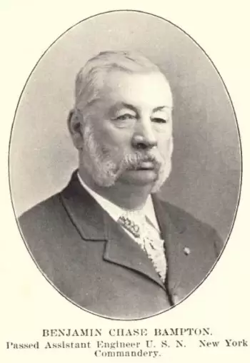BAMPTON, BENJAMIN CHASE (1836-1921). First assistant engineer, United States Navy. A native of New York City, he was educated in the public schools there and was apprenticed as a machinist. Bampton first joined the United States Navy as a third assistant engineer on May 21, 1857, and served on the frigate Mississippi in the East Indies, China and Japan. He rose to second assistant engineer on August 2, 1859, and then became a first assistant engineer on December 17, 1862. In the first two years of the Civil War, he was attached to the sloop-of-war USS Iroquois, then served on the monitor Passaic, the frigate Wabash and the sloop-of-war Nyack for four years. As per his obituary in the New York Tribune, he fought under Admiral David Farragut in many Naval battles during the Civil War including the siege of New Orleans.