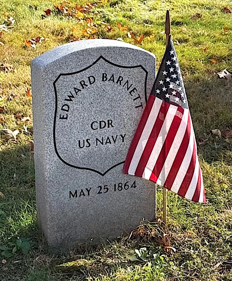 Baker received a pension from the Navy, certificate 40,169. He last lived at 699 Putnam Avenue in Brooklyn. He died from heart disease. In 1911, his widow applied for and received a pension from the Army, certificate 734,340. (The pension number for his widow was the same on the Army and Navy records.) Section 137, lot 29235.
