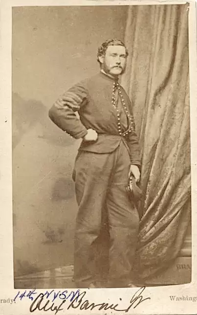 BARNES, ALFRED CUTLER (1842-1904). Sergeant, 23rd Regiment, New York State National Guard, Company A; unknown rank, 7th Regiment, New York State Militia, Company C. Born in Philadelphia, Pennsylvania, his family moved to Brooklyn in 1845 where his father, a publisher, was head of a prominent book concern. Several of his ancestors served in the Revolutionary War and the War of 1812, others were founders of the city of Hartford, Connecticut.