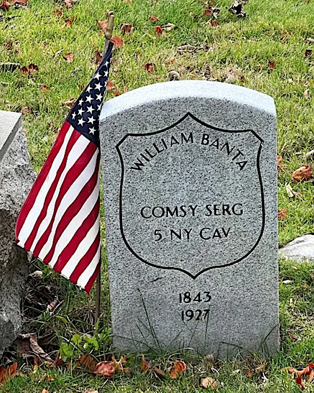 As per his obituary in the New York Sun, which confirms his Civil War service, Banta owned a hat business on Sixth Avenue near 14th Street, following in the footsteps of his father whose hat store was on Canal Street. He last lived at 91 West 4th Street in Manhattan and was survived by two sons and a daughter. He died from heart disease. Section 105, lot 5263.