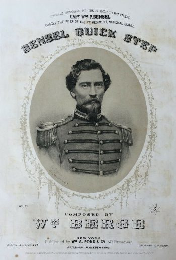 BENSEL, WILLIAM P. (1818-1883). Captain, 7th Regiment, New York State Militia, Company A. At age 42, he began his first tour of duty after enlisting as a captain at New York City on April 17, 1861. Bensel was commissioned into the 7th Regiment on May 16 of that year, and mustered out the next month on June 3. He also served as a captain for 30 days with the same regiment and company (then part of the New York State National Guard) in June-July 1863, mustering out on July 20 of that year. The regiment, under the command of Colonel Marshall Lefferts (see), spent time in Baltimore and Frederick, Maryland.
