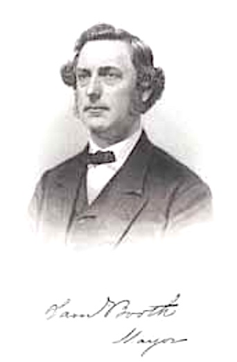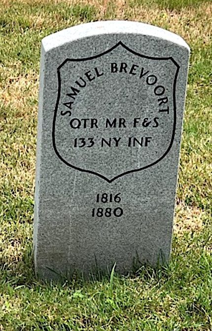 BREVOORT, SAMUEL (1816-1880). Quartermaster, 133rd New York Infantry. Brevoort was born in Cazenovia, New York. Active in politics, he was a Regular Democratic Whig who was elected assemblyman in 1855. On October 12, 1857, an article in The New York Times noted that F. A. Tallmadge, the General Superintendent of the Metropolitan Police, had selected Brevoort as his special aide recognizing his “characteristic zeal and devotion to duty….” Brevoort declined re-nomination to run for the Assembly to accept Tallmadge’s offer. At the time of that appointment, a biography of him stated that he at one time was an apprentice tailor in Waterville, New York. He had also held the position of superintendent of the Crystal Palace, an exhibition center in New York City built for the Exhibition of Industry of All Nations held there starting in 1853 and ending in 1858 when the building burned down.