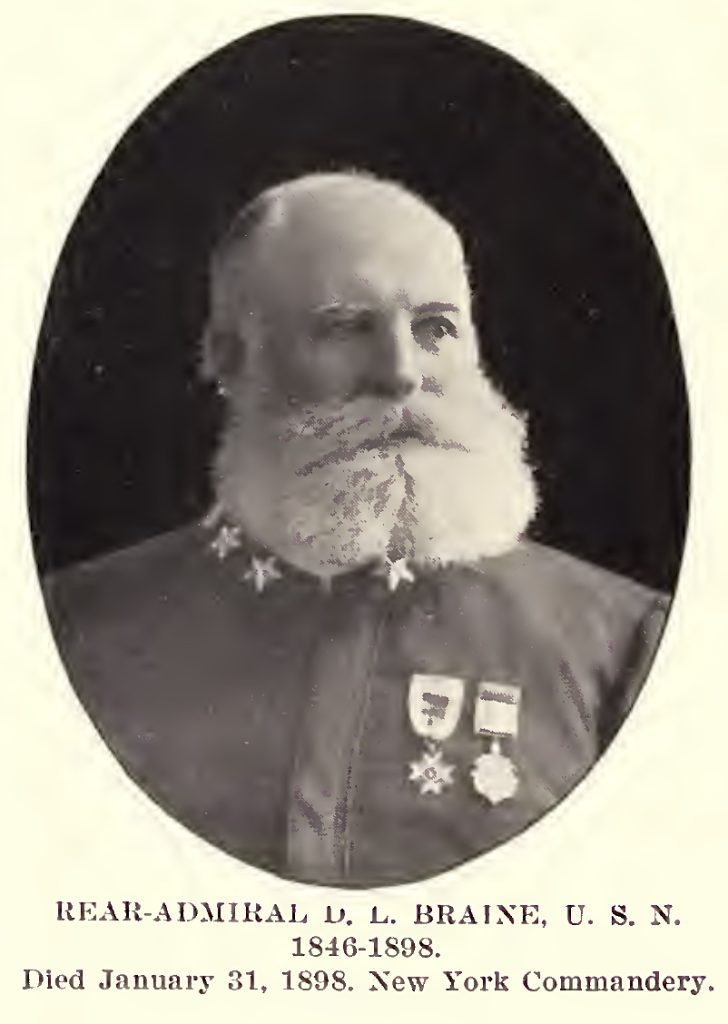 BRAINE, DANIEL LAWRENCE (1829-1898). Lieutenant commander, United States Navy. Born in New York City, he was appointed midshipman on May 30, 1846, and served during the Mexican War at Alvarado, Tobasco, Tuspan, Laguna, Tampico and Vera Cruz. He then had assignments in the Home Squadron, the West Indies, South America, the Mediterranean, and Africa prior to the Civil War. Braine rose to passed midshipman on June 8, 1852, to master in 1855, and to lieutenant on September 15, 1858.