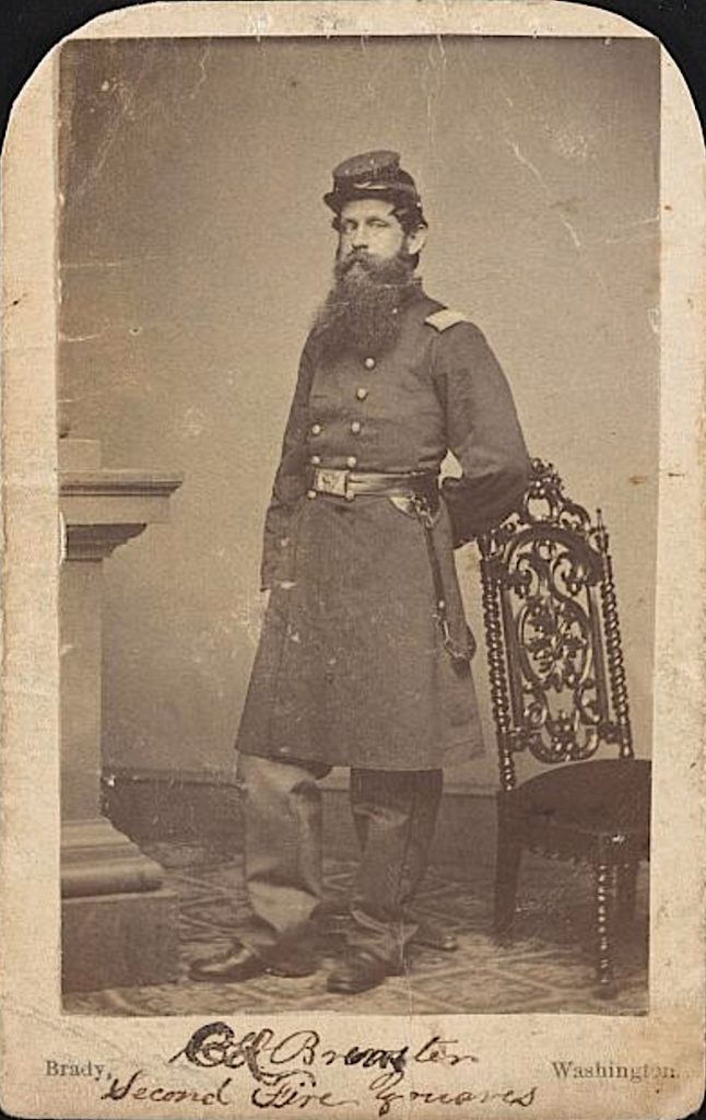BREWSTER, WILLIAM ROOT (1828-1869). Brigadier general by brevet; colonel, 73rd New York Infantry; major, 28th Regiment, New York State Militia. Born in Goshen, Connecticut, Brewster enlisted at Brooklyn as a major on April 23, 1861, was commissioned into the Field and Staff of the 28th New York State Militia on May 11, and mustered out with his regiment on August 5 at Brooklyn. During the Battle of Bull Run, Virginia, his regiment was assigned to guard the Potomac River and did not see action. After his promotion to colonel on August 19, 1861, following recruiting duty in New York, he was commissioned into the Field and Staff of the 73rd New York Infantry, also known as the Fourth Excelsior, on September 13. The regiment, made up mostly of recruits from the fire departments in New York and Brooklyn, was part of the Peninsula Campaign. He commanded the 73rd at the Battle of Williamsburg, Virginia, on May 5, 1862, which he described in his field report two days later: