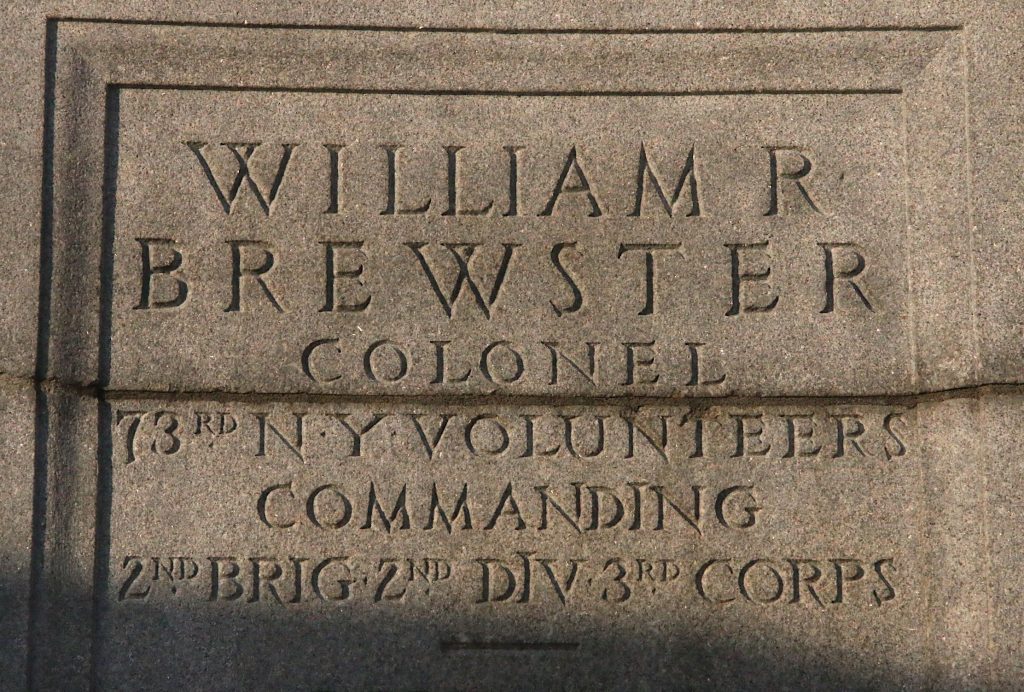 A United States Internal Revenue official, Brewster last lived in Brooklyn at 6 Harrison Place where his death was attributed to “softening of the brain.” Members of his regiment and his fellow Freemasons were invited to his funeral according to his obituary in The New York Times. Julia Brewster, who is interred with him, applied for and received a widow’s pension in 1879, certificate 295,990. A monument to the Excelsior Brigade, dedicated on July 2, 1893, stands in the field where it saw action at Gettysburg, and is now known as the Excelsior Field. Section 43, lot 806.