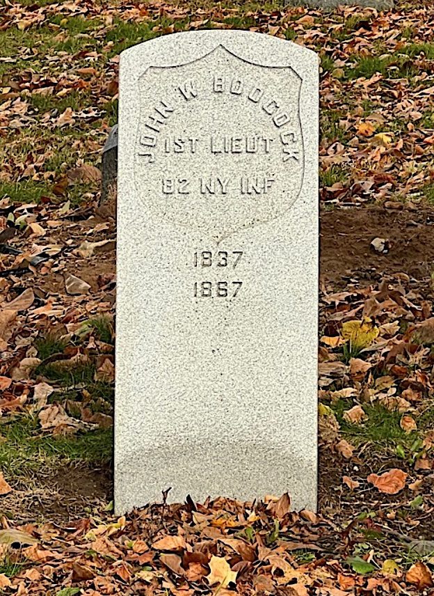 BOOCOCK (or BOCOCK), JOHN W. (1837-1867). First lieutenant, 82nd New York Infantry, Company C; second lieutenant, 19th Regiment, New York State National Guard, Company D. A native of New York, Boocock enlisted at New York City as a first lieutenant on May 21, 1861, mustered immediately into the 82nd Infantry and was discharged from military service on September 1, 1861, at New York City. On May 26, 1862, he re-enlisted as a second lieutenant at Newburgh, New York, served for three months with the 19th regiment, and was discharged on September 6, 1862, at Newburgh. His last residence was 362 Henry Street, Brooklyn. Section 90, lot 22539.