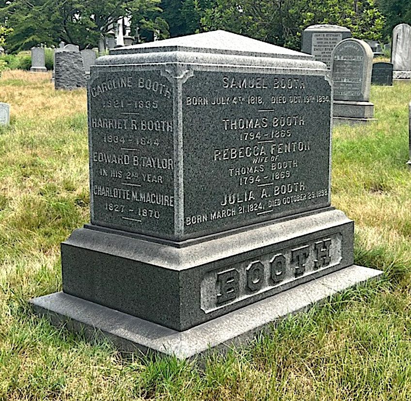 BOOTH, SAMUEL (1818-1894). Brooklyn mayor, chairman of the Brooklyn Bounty Committee. Born in England, he immigrated with his parents to New York City as an infant. At the age of ten they moved to Brooklyn, where he lived for the rest of his life. At the age of fourteen he left school to become a clerk in a wholesale grocery business. After two years there, he apprenticed to a carpenter-builder and pursued that trade for the rest of his life. In 1851 he was elected alderman and was responsible for the erection of the Kings County Penitentiary. He was elected supervisor in 1857 and served as chairman of the committee for the erection of the County Court House and as chairman of the Bounty Committee during the Civil War. In all $3,800,000 was expended under his supervision to pay bounties to enlisting volunteers and to make payments to widows and orphans of soldiers. He served as mayor of the City of Brooklyn 1866-1867 and was appointed postmaster of Brooklyn in 1869. Section 66, lot 3840.