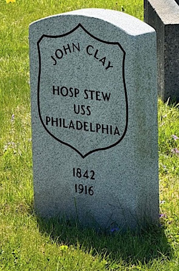 In his report of July 26, 1894, R. W. Meade noted that Cline suffered an attack of “hysteria” while on board the Mohican in July 1885 at which time he had a headache and partial paralysis of the right hand and arm resulting in time off from duty for a week. In October 1893, onboard the Charleston, he suffered from vertigo for four days and then, while on the Charleston in May 1894, he was placed on the sick list with “neurasthenia,” a term no longer in scientific use, describing a condition of the nervous system that affected memory, and caused nervousness, and despondency. On June 4, he was declared “unfit for duty.” His last residence was 634 Greene Avenue in Brooklyn. He died after an operation for cancer of the tongue at Long Island College Hospital in Brooklyn. Leonora Cline, who is interred with him, received a widow’s pension of $30 a month from the Navy in 1898, certificate 13,078. The pension document states that Cline retired as a chief engineer with relative rank of lieutenant commander. Section 63, lot 7411, grave 1.