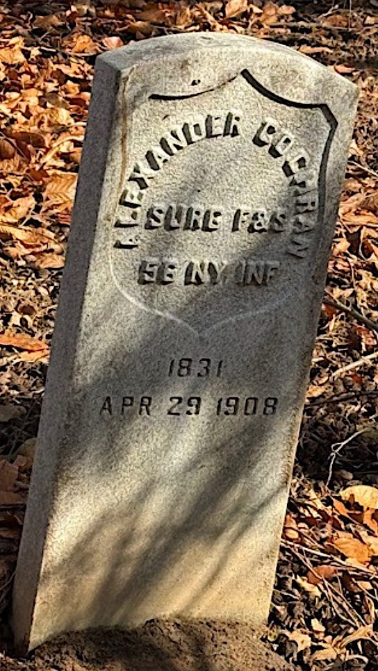 Subsequently, Cochran was a member of the veterans association of the 5th New York. In 1879, his application for an invalid pension was granted, certificate 233,604. According the census of 1880, he was employed as a machinist. He joined the G.A.R., Adam Goss Post #330, in New York City, on March 8, 1887. The Veterans Schedule for 1890 confirms his military service. The census for 1900 indicates that he was working as a store keeper at that time. His last residence was 486 Third Avenue in Brooklyn. Shortly after his death from endocarditis, Mary Cochran applied for and received a widow’s pension, certificate 574,827. Section 128, lot 31394, grave 495.