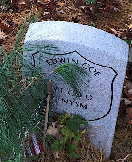 In 1891, his application for an invalid pension was approved under certificate 821,753. According to the census of 1900, he was employed as a station engineer. A member of W. W. Stephenson Post #669 of the G.A.R., his obituary states that he also belonged to the Brooklyn Engineers’ Association. He last lived at 10 Kensington Terrace in Brooklyn. His death was attributed to diabetes. Shortly after his death in 1902, Ellen Coleman applied for and received a widow’s pension, certificate 543,769. Section 114, lot 8999, grave 38.