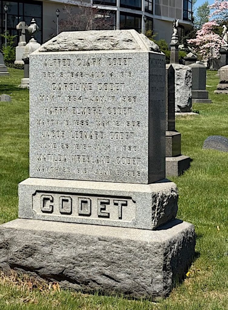 As per his obituary in the Brooklyn Standard Union, which confirms his Civil war service, he died at the home of his daughter in Hillsdale, New Jersey, while on a visit. His death was attributed to myocarditis (inflammation of the heart muscle). That obituary notes that he was retired and had lived in Brooklyn for nearly sixty years. His funeral took place at the home of his other daughter at 43 Midwood Street in Brooklyn. He was also survived by his widow, Carrie Herwig Codet, and a son. Section 138, lot 26756, grave 5.