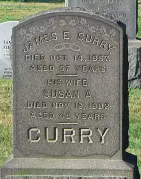 CURRY, JAMES (or JOHN) E. (1840-1897). Private, 84th New York (14th Brooklyn) Infantry Company D; Veteran Reserve Corps; 5th New York Heavy Artillery, Company D. Curry enlisted as a private on April 18, 1861, at Brooklyn, and mustered into the 14th on May 23. On September 17, 1862, he was wounded in action at the Battle of Antietam, Maryland, and transferred into the Veteran Reserve Corps on July 1, 1863. Pursuant to General Order 283, he was transferred to the Invalid Corps as of August 1, where he was borne on the rolls as James E. Curry. He re-enlisted as a private at Goshen, New York, on September 1, 1864, mustered into Company D of the 5th New York Heavy Artillery that same day, and mustered out on June 22, 1865, at Harpers Ferry, West Virginia.