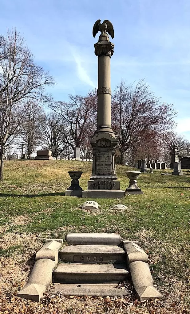 As per an article about his death in The New York Times on March 27, 1902, Daggett was the superintendent of the New York store of retailer John Wanamaker. That store’s employees adopted resolutions of appreciation attesting to his abilities as a skillful executive and sympathetic friend, free of malice, who demonstrated kindness to all employees in the company. Among the tributes was the acknowledgement that “he was a lovable man, helpful and kindly, whose character and daily walk endeared him to all with whom he came in contact.” Another of the resolutions, which was included in his obituary in the New York Herald read, “It mattered not what duties taxed his physical and emotional strength, his time was always given, his ear always open, when he was appealed to even by the humblest.” His death was also announced in the Brooklyn Daily Eagle and the New York Tribune, which also quoted from the resolutions of condolence. Daggett worked for the John Wanamaker store for eighteen years in both the Philadelphia, Pennsylvania, and New York City establishments. He last lived at 170 Washington Park in Brooklyn. His death was attributed to heart disease. Philadelphia newspapers were asked to print notices of his death. Shortly after his death in 1902, Emma Dickinson Daggett applied for and received a widow’s pension, certificate 705,412. He was also survived by two children. Section 205, lot 31066, grave 1.