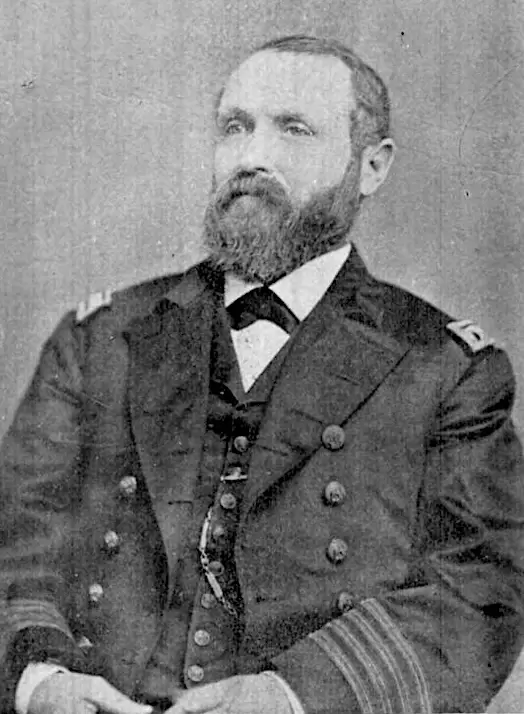 DANBY, ROBERT (1821-1886). Captain, United States Navy. Danby was born in Wilmington, Delaware. According to his descendant, Elizabeth Danby Meade, his father was a prominent cooper (barrel-maker) whose family papers are housed in the Delaware Historical Society. Robert Danby joined the United States Navy as a third assistant engineer on January 18, 1845 (some documents say 1844), and continued in active service until his mandatory retirement at age 62 in 1883. An article on Danby’s retirement that was published in the Brooklyn Daily Eagle on September 30, 1883, indicates that he was first assigned to the USS Princeton, the vessel that was the site of the 1844 infamous accident that killed Secretary of the Navy Upshur and four others when one of its two long guns, “the peacemaker,” burst sending shrapnel into the crowd and on its deck during a demonstration cruise. That article goes on to say that Danby then led a fleet of four flag ships, including the Princeton, to Galveston during the war for Texas’s independence.
