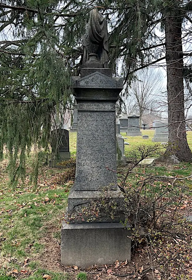 A carriage manufacturer by trade, he had a factory on Henry Street in Brooklyn for fifty years. The 1873-1876 and 1890-1892 Brooklyn Directories lists him as a carriage builder at 18 Henry Street; during those years, he lived at 84 Poplar Street. His last address was 84 Poplar Street in Brooklyn. Davis died of apoplexy. Section 138, lot 26048.