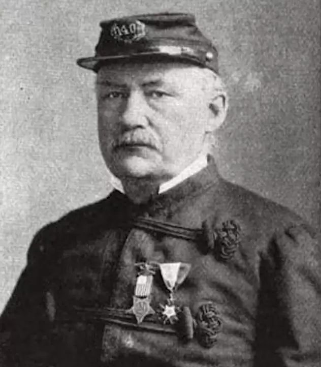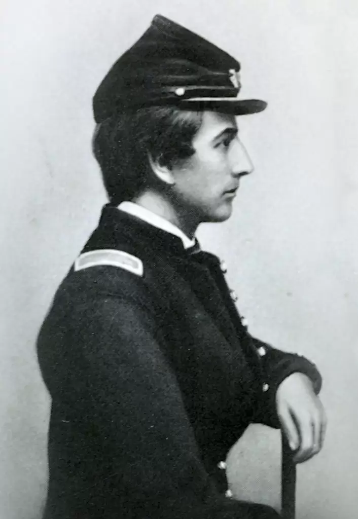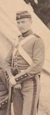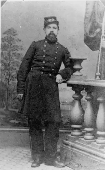 At the age of 21 or 22, on May 14, 1864, as a resident of Rockford, Illinois, he enlisted as a private in Company I, Illinois 134th Infantry, and mustered in at the end of that month. Discharged from the 134th on October 25 of that year at Chicago, he re-enlisted, as a resident of Palentine, Illinois, on February 20, 1865, in the 153rd Illinois Infantry, Company G, and mustered out of service on September 21, 1865.