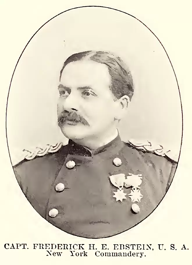 EBSTEIN, FREDERICK HENRY ERNST (1847-1916). Sergeant, 4th Infantry, United States Army, Company H. Of German birth, he immigrated to the United States at the age of 10 and settled with his family in Poughkeepsie, New York, where his father was a physician. A graduate of the Riverview Military Academy there, he was a reporter for the Poughkeepsie Eagle. He enlisted as a private on November 18, 1864, and served as a private, corporal and sergeant with the 4th United States Army.