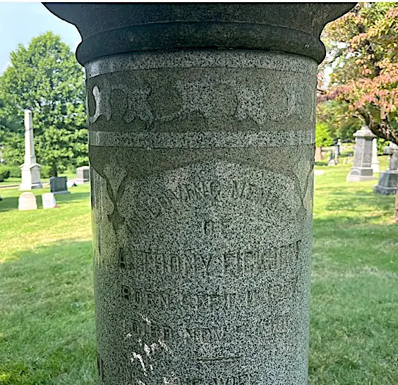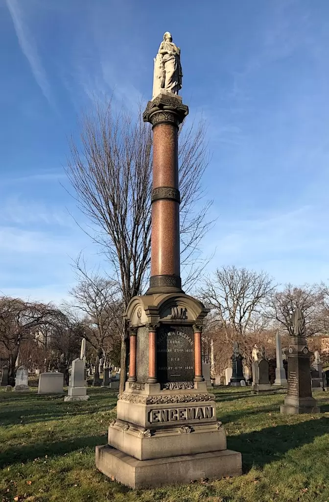 During the Civil War, he enlisted as a private at New York City on October 24, 1862, mustered into the 174th on November 10, and transferred into the 162nd New York on February 17, 1864, from which he deserted on September 1, 1864. According to the census of 1870, he had a marble works. At that time, his real estate was valued at $25,000, and his personal estate at $2,000. He last resided at 490 Hicks Street in Brooklyn. “Softening of the brain” is listed as the cause of his death. Section 112, lot 14526.