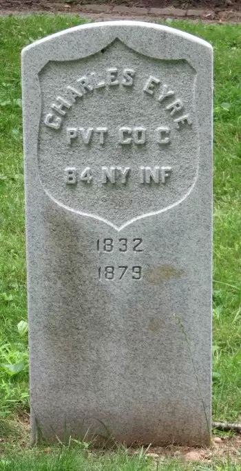 ECCLES, WILLIAM (1825-1873). Corporal, 139th New York Infantry, Company F. Of Irish birth, Eccles enlisted as a private at Brooklyn on August 30, 1862, mustered into the 139th New York on September 9, and was promoted to corporal of his company on November 15. He mustered out on June 19, 1865, at Richmond, Virginia. His last residence was 30 Fleet Street in Brooklyn. His death was caused by pneumonia. Section 17, lot 17245, grave 774.