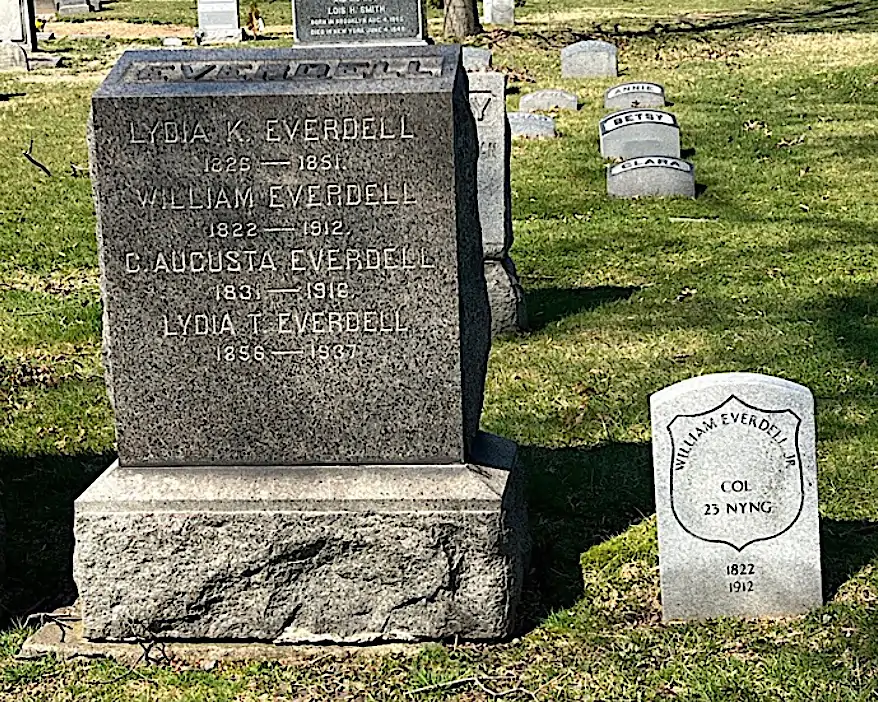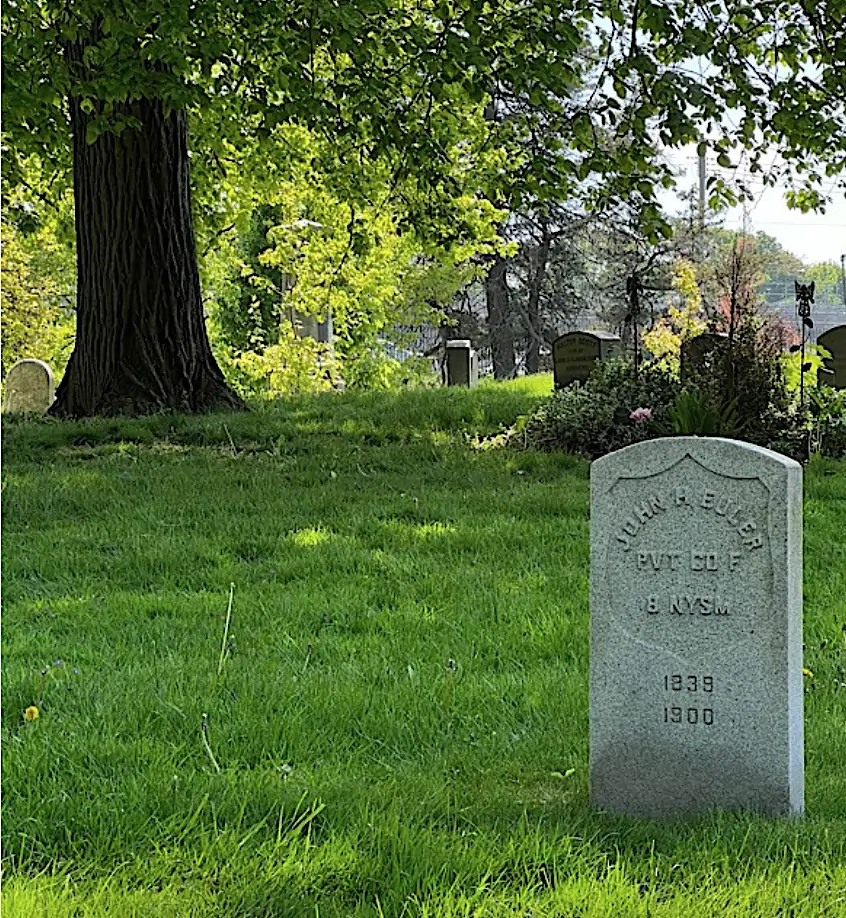 Eddy was active in the U. S. Grant G.A.R. Post #327, which he joined in 1896. Eddy’s obituary in the New York Herald confirms his Civil War service. His last address was 272 Clifton Place in Brooklyn. He died from cancer. Section 5, lot 20126.