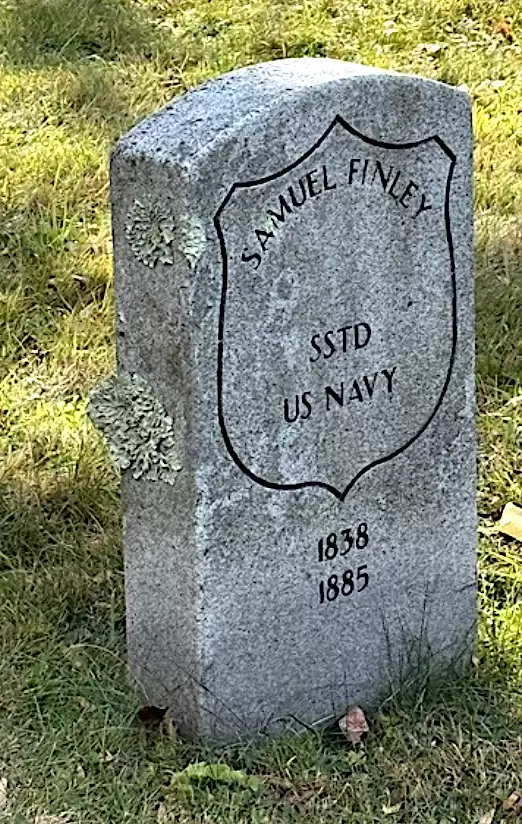 FINLEY, THOMAS K. (1845-1890). Ordinary seaman, United States Navy. Finley, who was born in Scotland, entered the United States Navy as a second class boy at New York City on October 26, 1862, rose to ordinary seaman at some point, and served aboard the USS Oneida and USS North Carolina. He saw action at Vicksburg, Mississippi, at New Orleans, Louisiana, and at Mobile Bay, Alabama, where he was wounded in both legs. He was discharged for disability at Philadelphia, Pennsylvania, on April 12, 1865. An affidavit from his brother in 1890 confirms his service under Admiral Farragut at New Orleans, Vicksburg, and Mobile Bay. In July 1890, he applied for a Navy invalid pension citing wounds in the hip and kneecap that was granted under certificate 16,646. His last address was 223 Avenue C in Manhattan. He died of an aneurysm in November 1890, with the pension awarded to his widow, Mary A. Finley, certificate 7,477. Section B, lot 11005, grave 363.