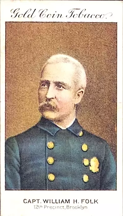 FOLK, WILLIAM H. (1837-1892). Major by brevet; captain, 173rd New York Infantry. He was born in Brooklyn where his father, John Seward Folk (see), was elected the first police chief of Brooklyn in 1851. He became a clerk in his father’s office in May 1856, and a patrolman two years later.