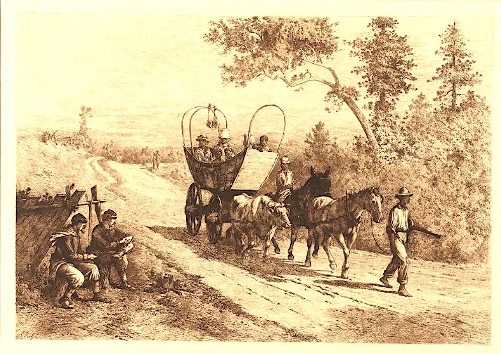 Perhaps the most affecting incident connected with this drama occurred an hour later. Mr. Lincoln’s body, enclosed in a plain wooden box, around which was wrapped an American flag, was borne from the house by six private soldiers; then placed in an ordinary hearse, behind which the soldiers marched like mourners; and so carried to the Executive Mansion. As the cortege passed along, it attracted but little attention, for but few persons knew what burden was being carried past their doors. It was fitting that this great man of the people-plain UNCLE ABE then, as in years gone by in his Western home-should pass through the silent streets of the capital under the escort of common men. The rude backwoodsman, who had become a Moses to lead a people to deliverance from servitude, when dead, first fell into the arms of men humble as he himself had been….