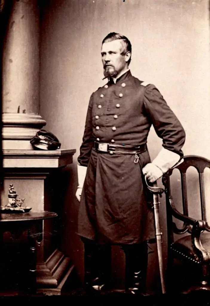 FRANK, PAUL (1828-1875). Brigadier general by brevet; colonel, 52nd New York Infantry; first lieutenant and adjutant, 5th Regiment, New York State Militia. Born in Saxony, Germany, on February 7, 1828, as Henry Paul Ferdinand Frank, he enlisted on April 19, 1861, at New York City, as a first lieutenant. On May 1, 1861, he was commissioned into the Field and Staff of the 5th New York State Militia as first lieutenant and adjutant and mustered out on August 7, 1861, at New York City. On October 25, 1861, he was promoted to colonel and was commissioned into the Field and Staff of the 52nd New York Infantry on November 1, the same day that his brother Emil (see) enlisted in that regiment. In the Peninsula Campaign in 1862, he was actively engaged in the Battles of Seven Pines and Fair Oaks (both in Virginia) and in all the battles and engagements during the seven days of fighting. William French praised him in his field report from Fair Oaks, Virginia, on June 3, 1862, for repulsing the enemy. Subsequently, Frank described the action at the Battle of Antietam, Maryland (September 17, 1862), in his report three days later: