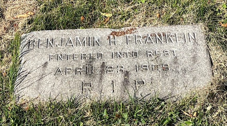 FRANKLIN, BENJAMIN H. (1824-1909). First lieutenant, New York Marine Light Artillery, Company E. After enlisting at New York City at age 38 on March 27, 1862, he was commissioned in two months later on May 27. He resigned on March 10, 1863. He lived to age 84 and was a resident of the Bronx. The cause of his death was nephritis. Section 90, lot 1467.