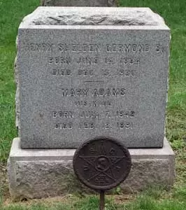 Sarah George, the executrix of his will, was bequeathed all of his furnishings including plate silver jewelry, wearing apparel, library, ornaments, musical instruments and other articles of household use and personal property. His son, John, was bequeathed $100; his daughter, Rebecca, was given $200; his step-daughter, Frances Penfield Davis, was given $200 and the remainder given to his wife who was free to sell any furnishings as she deemed necessary. After his death, Sarah Olive Penfield George applied for and received a widow’s pension from the Navy, certificate 6,126; it is unusual that Sarah also received a widow’s pension from the Army in 1890 based on her first husband’s service, certificate 331,737. Enoch George, Henry Penfield and Sarah Penfield George are all buried in the same lot; in 1900, Sarah was living with her daughter and son-in-law, Frank H. Adams. Section 3, lot 21025.