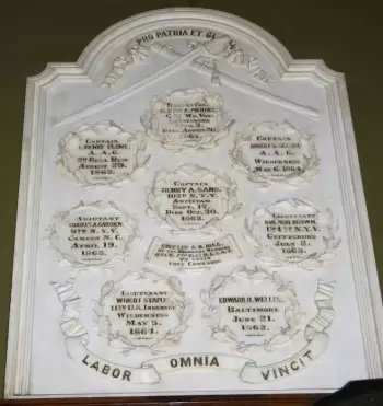 FUNK, AUGUSTUS (1841-1883). Captain, major, and lieutenant colonel by brevet; colonel, 39th New York Infantry; major, 38th New York Infantry, Companies C and H. Originally interred at Green-Wood, his remains were removed on November 1, 1892. Although cemetery records list Funk as German by birth, his soldier record states that he was born in Florida. After enlisting at East New York as a second lieutenant on May 7, 1861, he was commissioned into Company C of the 38th New York on June 3, and became a first lieutenant on August 6. He rose to captain on January 11, 1862, effective upon his transfer to Company H on February 12 and was wounded on May 5, 1862, at Williamsburg, Virginia. Funk was promoted to major on October 10, 1862, transferred into the Field and Staff on November 17, and mustered out on June 22, 1863, at East New York. After re-enlisting on January 20, 1864, he was promoted to colonel and commissioned into the 39th New York, and mustered out on July 1, 1865, at Alexandria, Virginia. Brevetted to captain on March 2, 1867, for his actions at Wilderness, Virginia, he was also brevetted to major and lieutenant colonel that same day. Funk had subsequent service as a lieutenant in the 41st Infantry, United States Army, from July 28, 1866 through November 20, 1868. In 1874, he was elected colonel of the 11th Regiment and then became brigadier general of the Second Brigade, First Division in the State Militia.