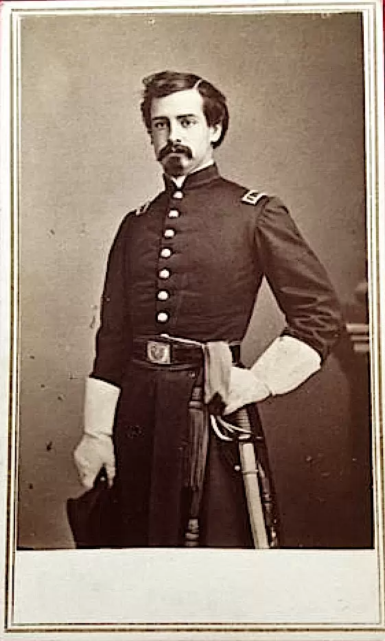 During the Civil War, he enlisted at New York City on August 5, 1861, and was immediately commissioned into the 1st New York Cavalry, also known as the Lincoln Cavalry. One biography notes that he was 5′ 10″ tall, graceful and genial in spirit. That biography states that in his six months in camp, he never tired of drill or his “mud-beleaguered quarters.”