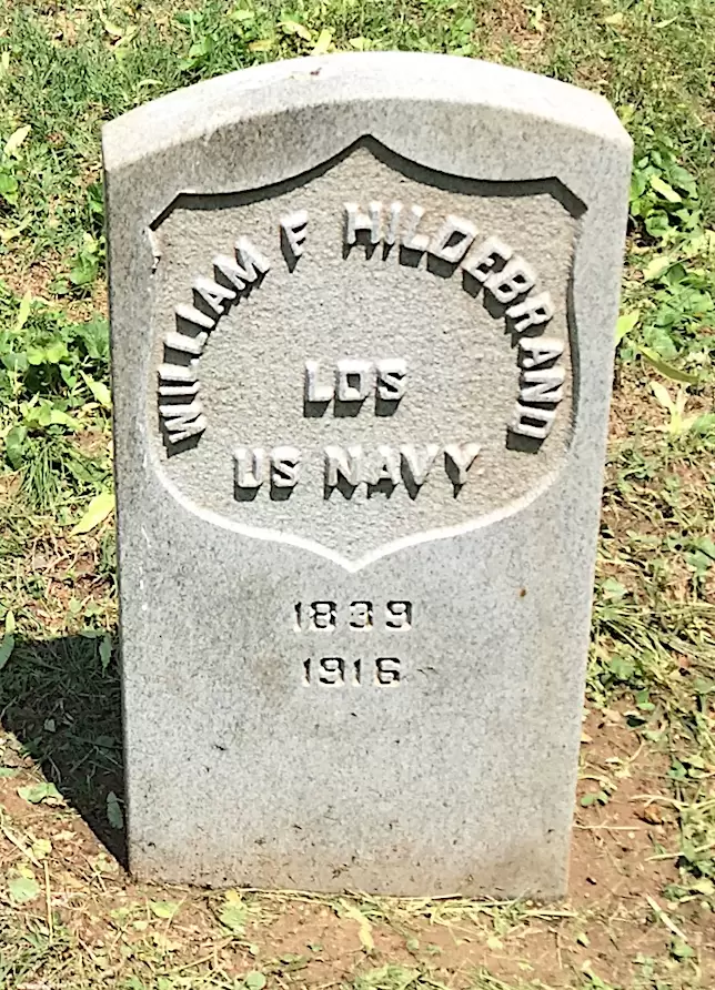 As per the census of 1880, Hildebrand was employed as a laborer. His Civil War service is confirmed by the Veterans Census of 1890. In 1893, he applied for an invalid pension from the Navy, citing inability to work due to rheumatism, hemorrhoids, and heart disease. Hildebrand stated that his hemorrhoids and rheumatism first troubled him in 1866. His affidavit stated that he took care of himself, his disabilities were not due to any “vicious” habits and that he was now troubled with kidney disease. Although his initial application, 38,876, was rejected, he ultimately was approved for an invalid pension of $12 a month as of July 20, 1895, certificate 23,239. The census of 1900 lists him as a bartender. William Hildebrand (see), his brother, also served in the Navy during the Civil War. He last lived on Water Street in West Brighton, Staten Island. His death was due to chronic tuberculosis meningitis. Section 50, lot 9072, grave 1.